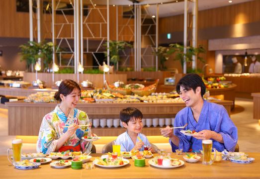 미야기 현의 신선한 해산물을 맛보고 싶다면 오에도 온센 모노가타리 프리미엄 호텔 소칸의 풍성한 뷔페가 가장 추천됩니다.